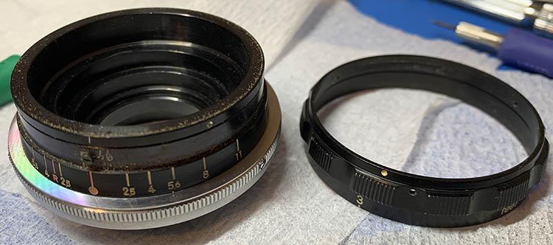 Separate this and do not forget to mark where it parted. Again, don’t forget to read my how to work with helicoids article to prevent any trouble from happening. Many people ignore this step so they end up with a bag of parts because they could not put the helicoids back together properly.