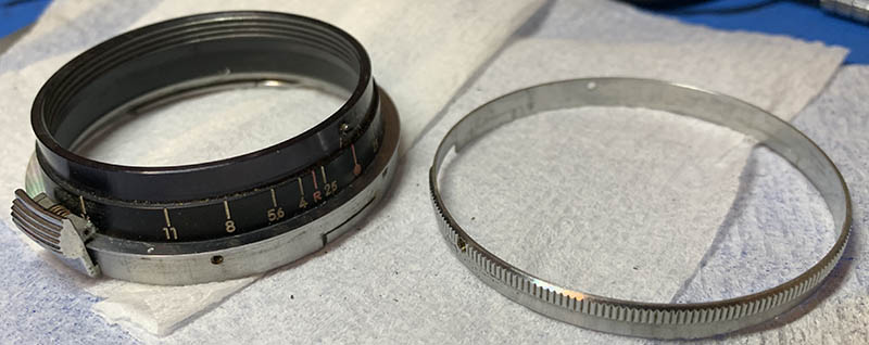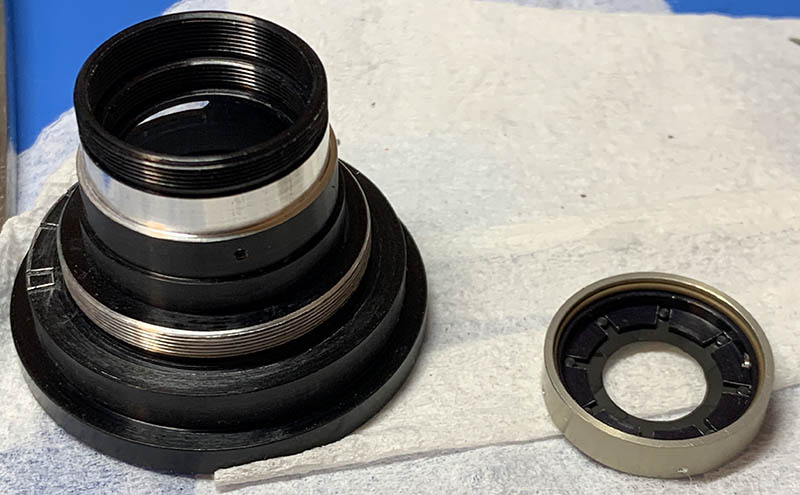 Before you continue, mark the range of the iris mechanism so you will know how it should be adjusted. It is an adjustable part and you should be able to put it back correctly later.