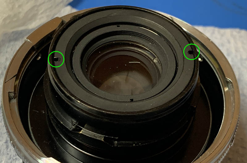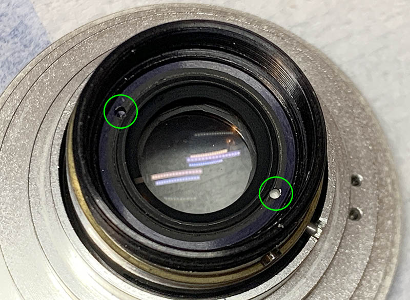 Extract these set screws so you can remove the iris mechanism.