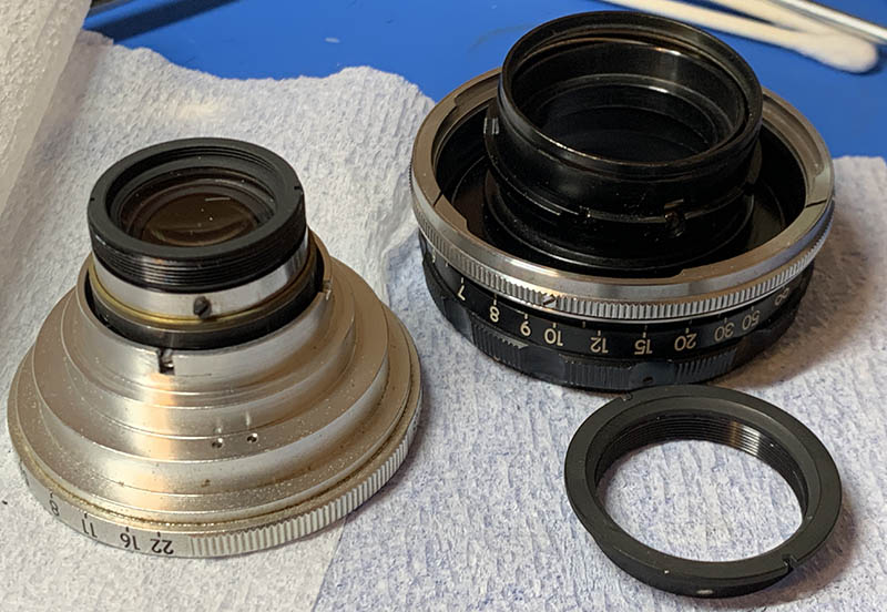 Each leaf was cleaned very carefully with Q-tips soaked in solvents, I used Zippo fluid for this as alcohol is not the right solvent for the type of grease used. Be sure to handle these carefully, accidentally destroying one is out of the question. Read my article on how to reassemble a manual iris to know how I did it.