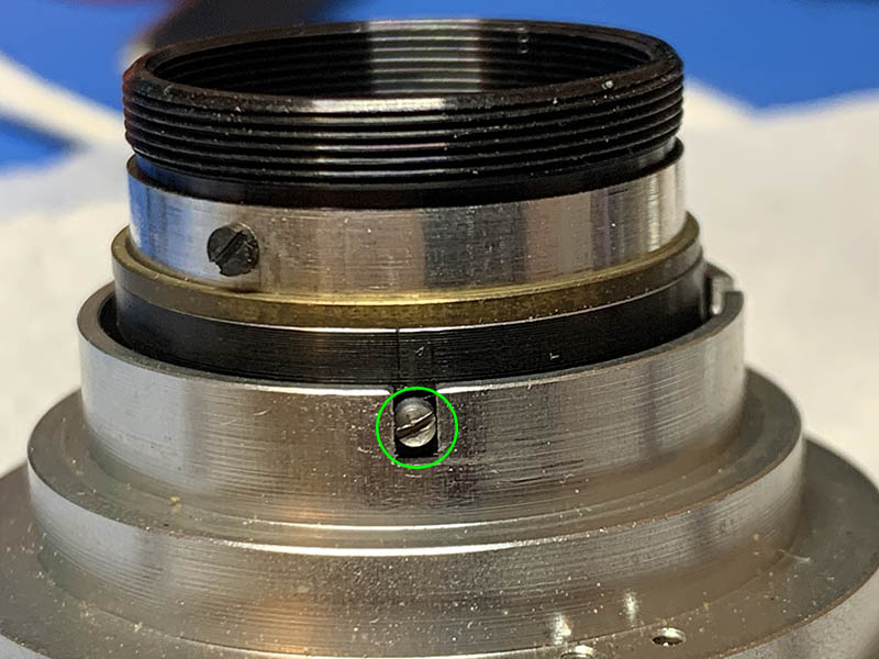 Carefully unscrew this so you can remove the aperture ring. You may also remove the other screw in this picture so you can remove the shim.