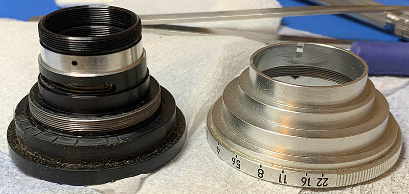 Before you continue, mark the range of the iris mechanism so you will know how it should be adjusted. It is an adjustable part and you should be able to put it back correctly later.