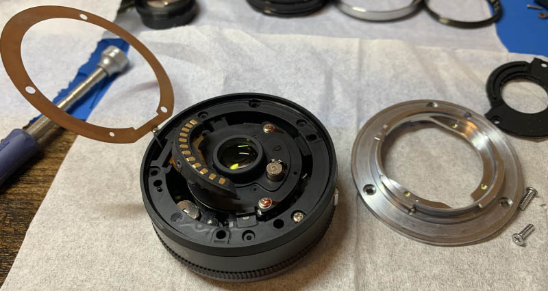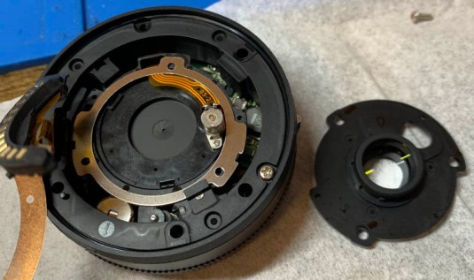 The construction of this lens is amazing in such a way that the engineers managed the cram lots of things inside such a small shell. This means that there’s little wiggle room inside of this lens and there will be lots of clever ways in which some of the parts have been put together. I won’t say that this lens is perfect for a beginner to work on but it’s not something so complicated that it will require expert intuition just to pull this project through. Like many electronic lenses you must be very careful with static electricity, use plastic or rubber tools as much as possible and take many pictures for reference just in case.