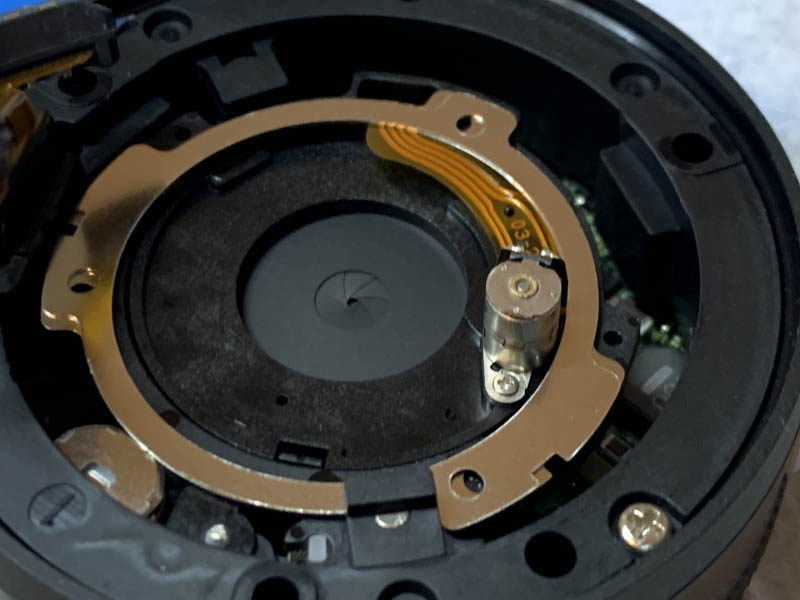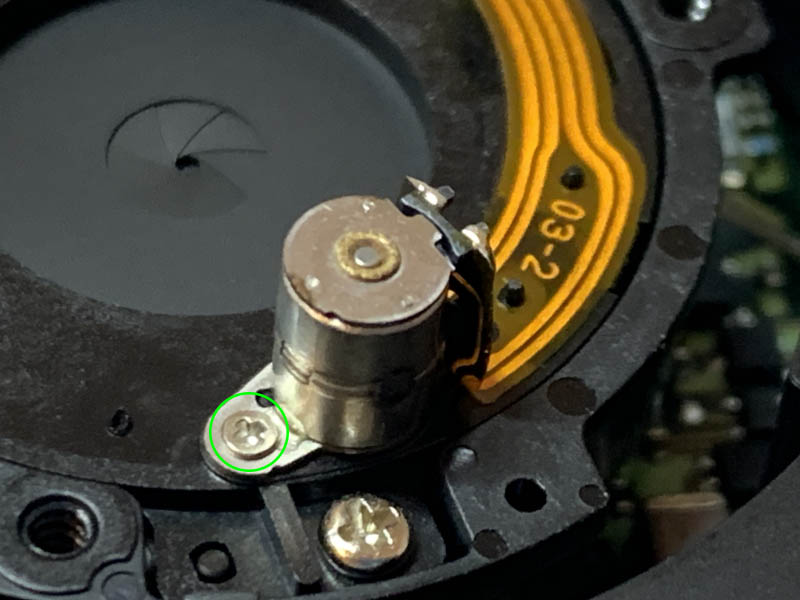 The peanut motor is secured by a tiny screw so you should use an equally tiny screwdriver to get it off. It’s also mounted on the autofocus mechanism so don’t put too much pressure.