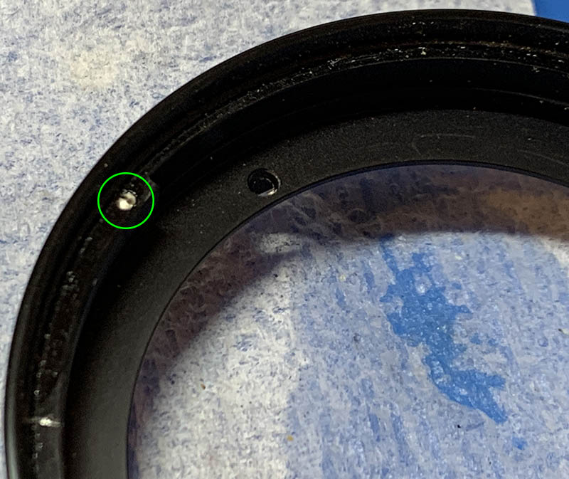 I also removed the front element because there’s plenty of dirt stuck underneath its retainer. I cleaned all of the gunk out to the best my ability.