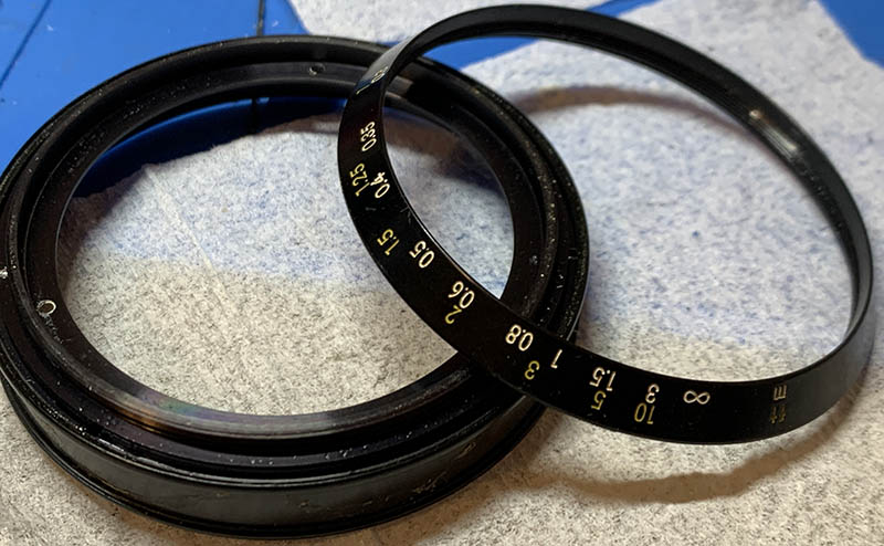 Unscrew the distance scale ring off. See how dirty it is underneath?