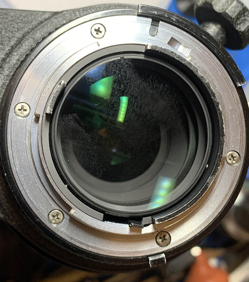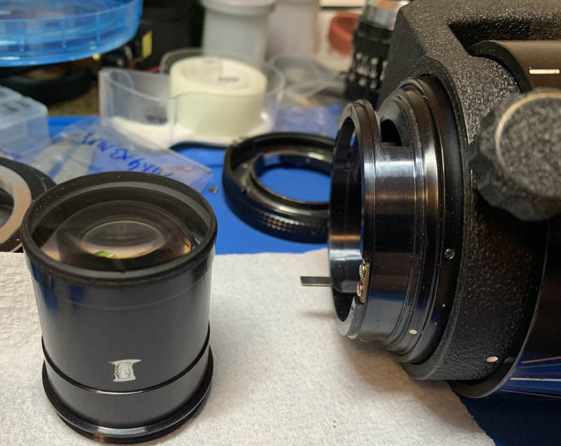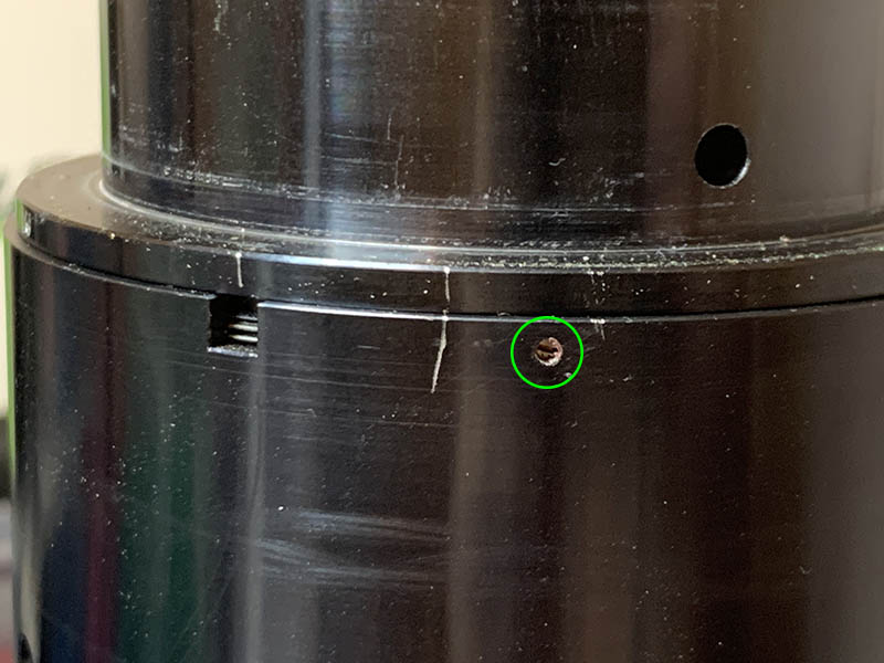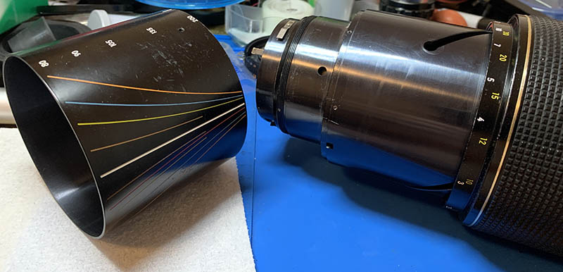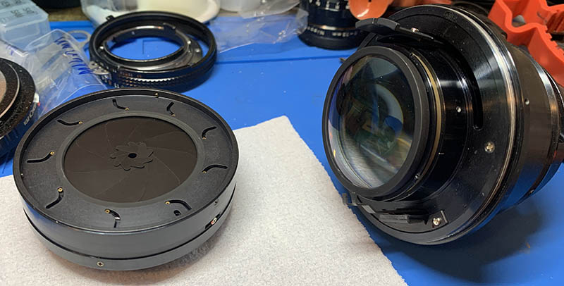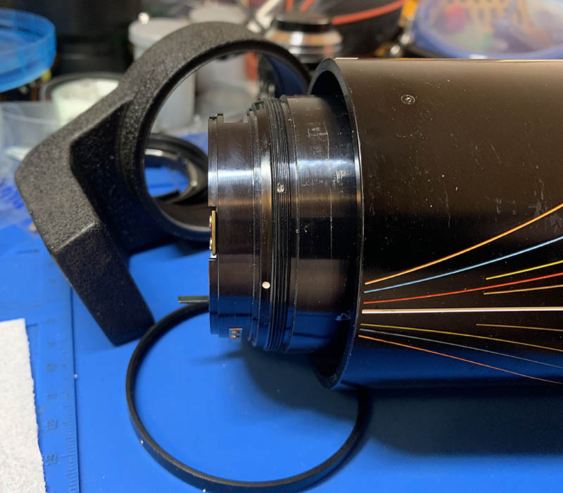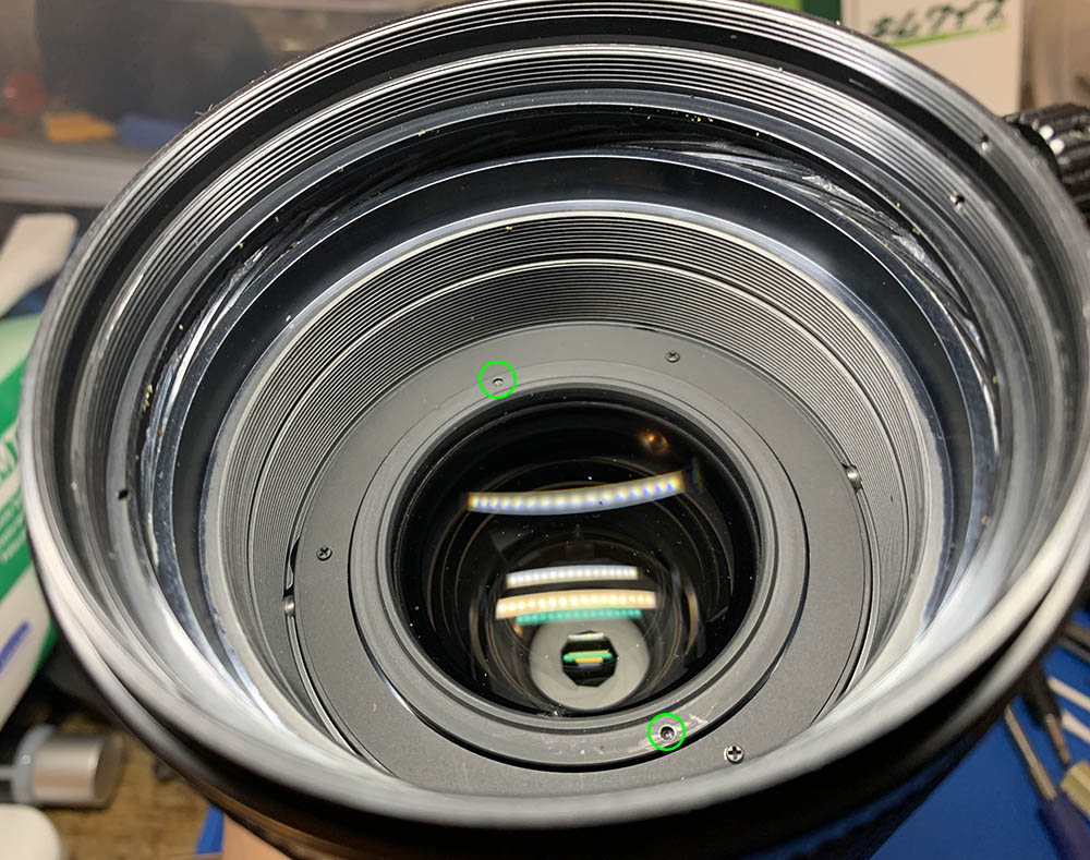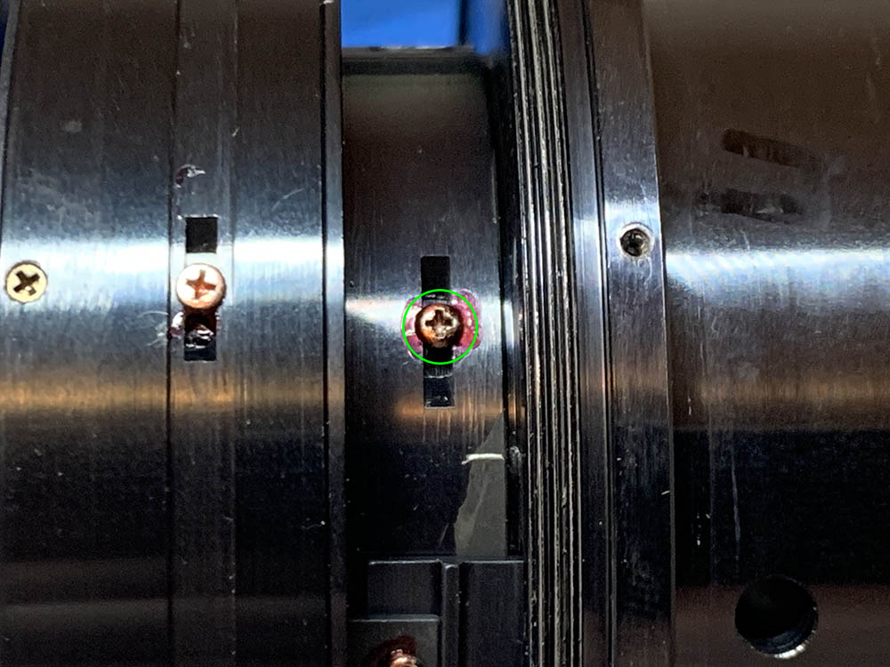 These secure the iris mechanism’s housing. Before removing them, mark the position of the iris’ housing. I made small marks to help me so I won’t have to guess everything myself later.