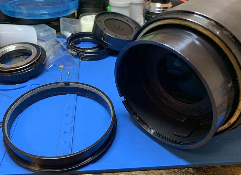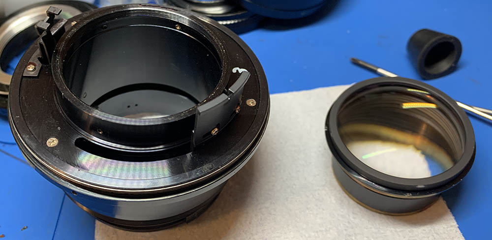 The construction of this lens isn’t much more complicated than a Zoom-Nikkor 80-200mm f4 Ai-S but it is so much more difficult because the parts are so big and many of them are sealed. This will take you more time to take apart than your usual lens, it’s not even close.
