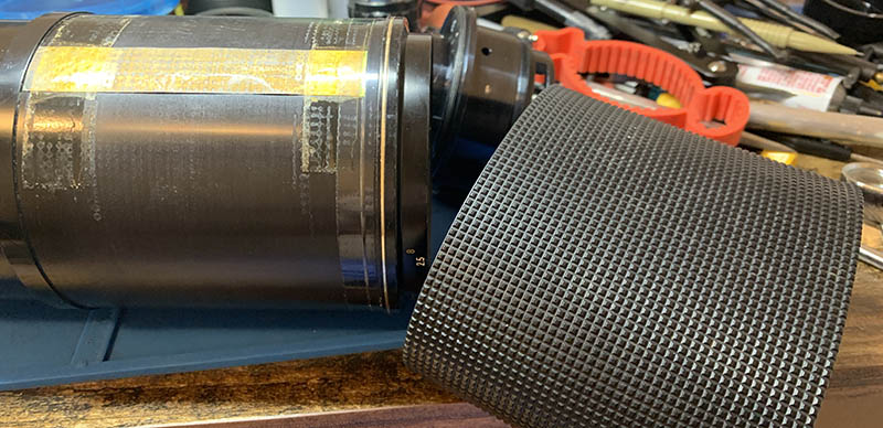 This is probably the most stressful part of the whole repair. I don’t want to rip this large chunk of rubber. I carefully slid it off but it took lots of time and concentration. It would have been easier one of the rings in the focusing barrel is gone so I didn’t have to expand this as much as required. That’s why I didn’t tape it back later during the assembly (the gold ring).