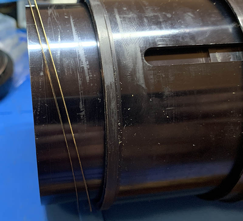 Find a lens spanner with long tips and carefully extract this assembly. You may want to apply a small drop of acetone if this thing won’t budge. As you can see, there are already pre-existing marks, someone was here and he’s probably not that skilled.