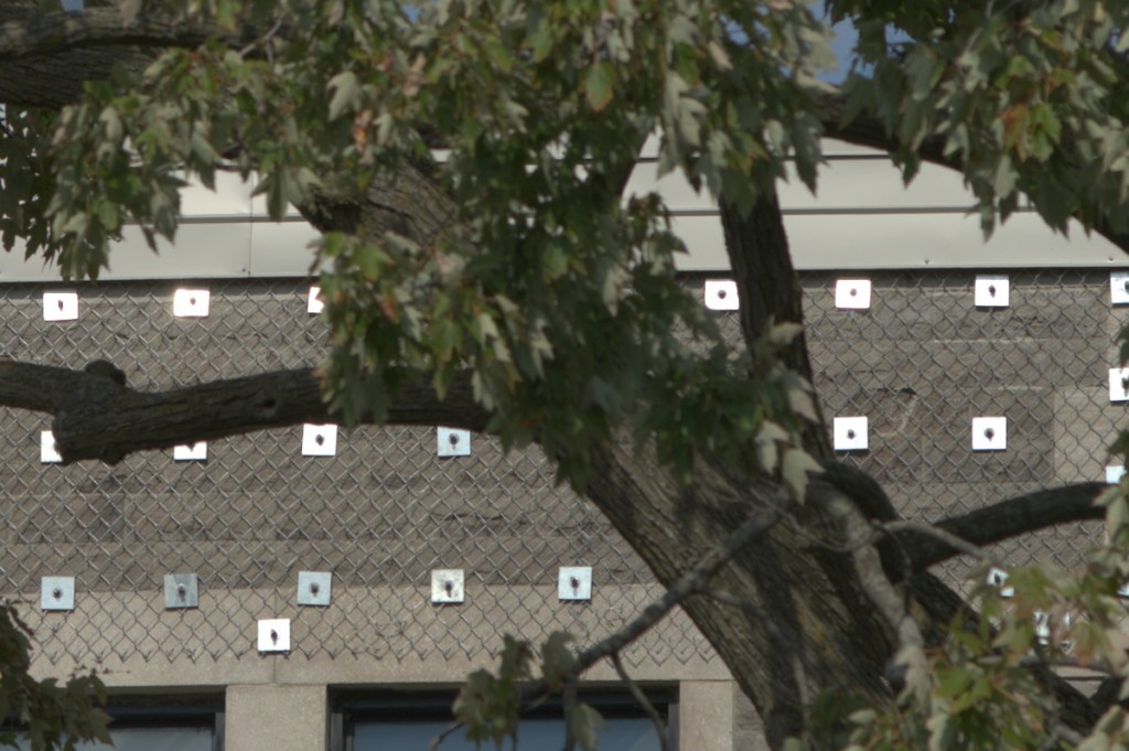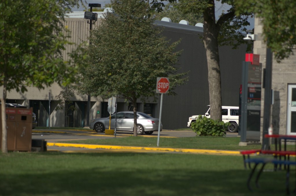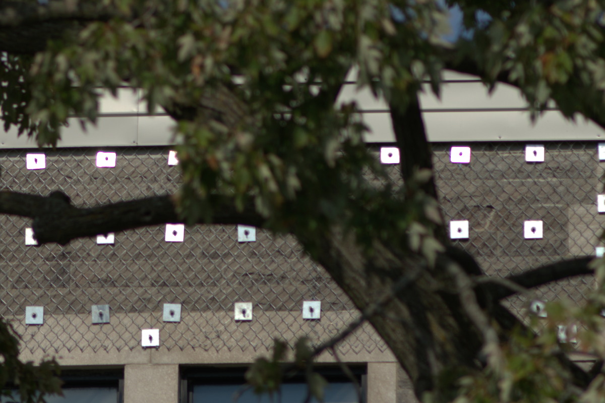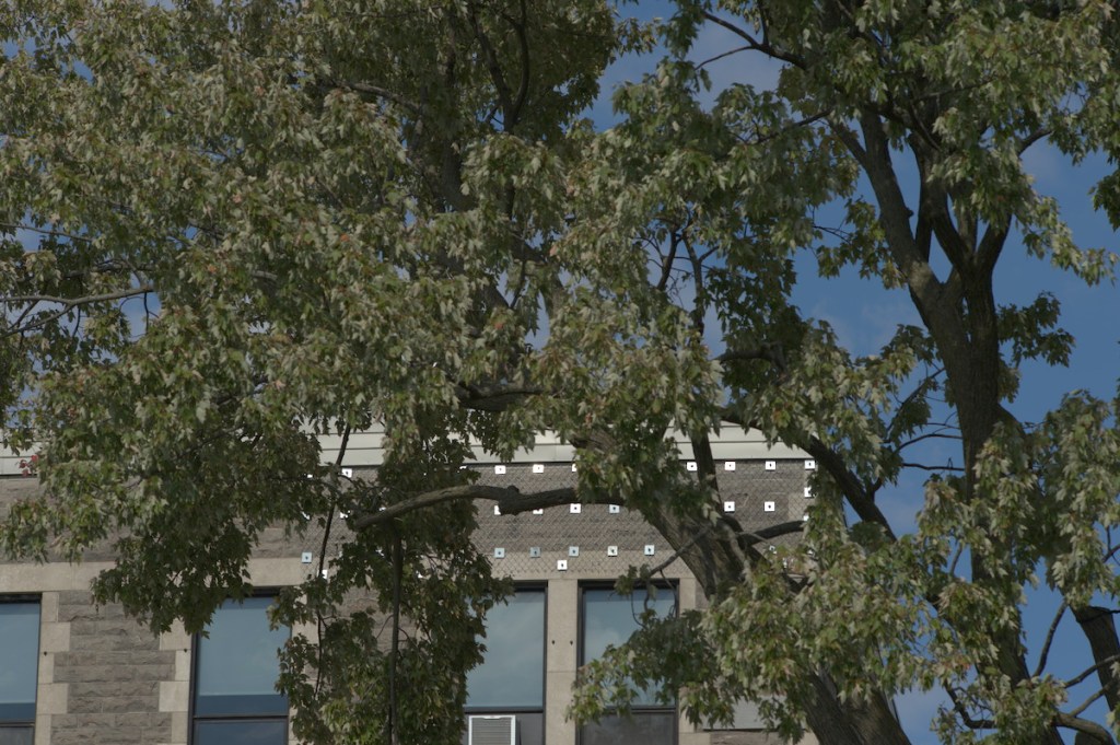 Interestingly, chromatic aberration isn’t that bad when shooting at distant subjects. It’s probably because there’s less things that are blurred. The resolving power of this lens is great, you are able to see the brick and their outlines easily in this photo.